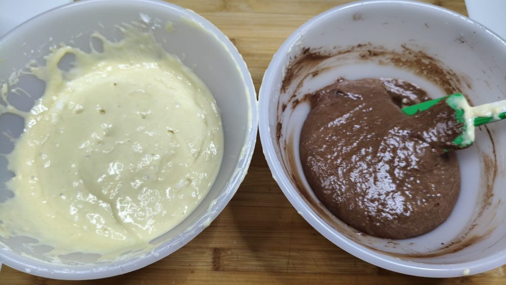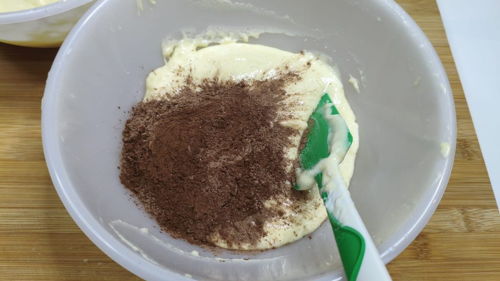 • dans une moitié ajouter le cacao.