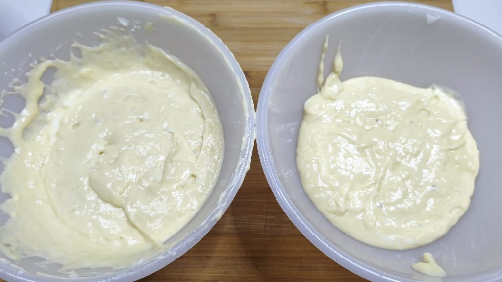 • Diviser la pâte en deux bols,