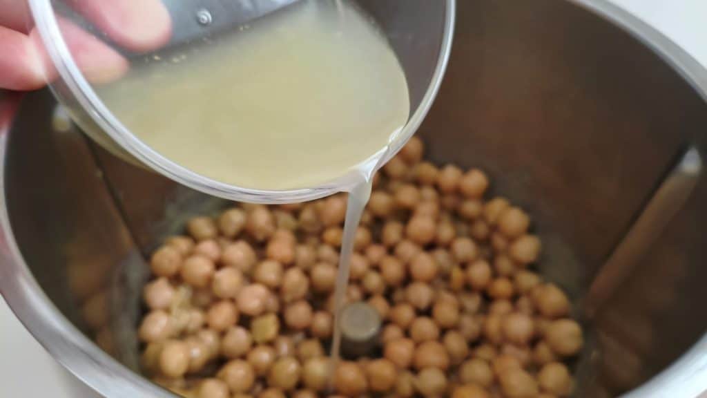 Pour préparer l’houmous, égoutter les pois chiches et les placer dans un mixeur, ajouter le jus de citron, l’huile d’olive et le tahini. Mixer.
