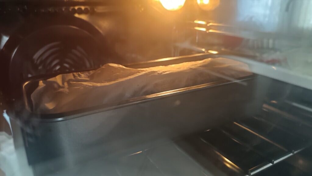 Le refermer dans le papier et l’insérer dans un moule (j’ai utilisé celui à cake)