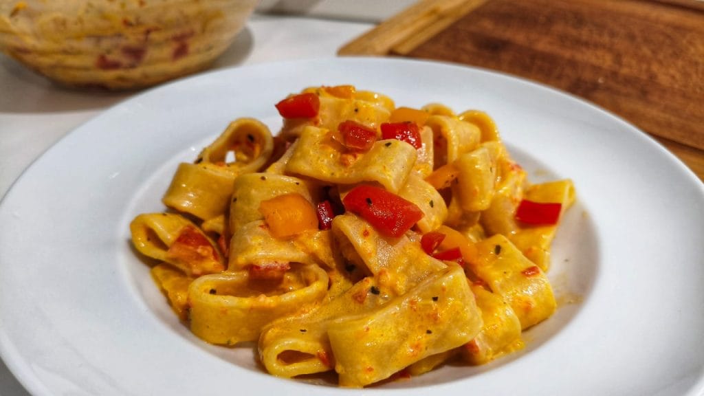 Pour moi, cuisiner signifie trouver un équilibre entre praticité et plaisir, et cette pâtes crémeuses aux poivrons incarne parfaitement ce concept.