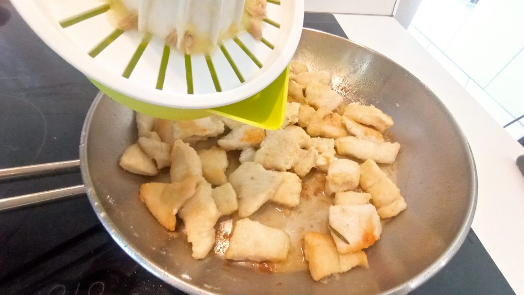 Ajoute le poulet et fais-le bien dorer sur tous les côtés.