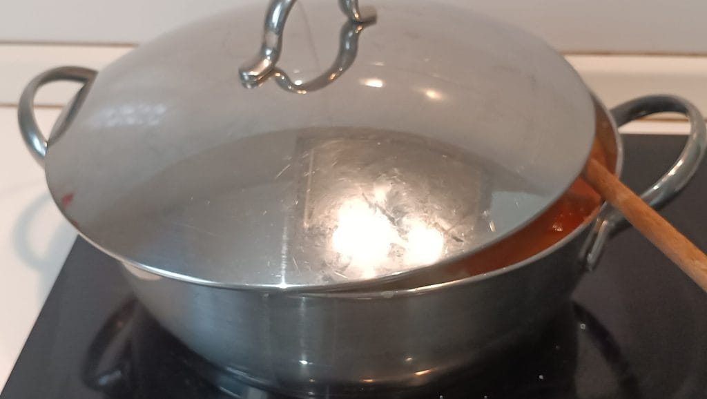 • Ajouter deux feuilles de laurier au goût et entrouvrir le couvercle en baissant la flamme au minimum en prenant soin de remuer de temps en temps.