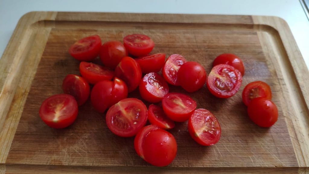 Je t’assure que le parfum du pesto associé aux tomates cerises et à la mozzarella est quelque chose d’irrésistible !