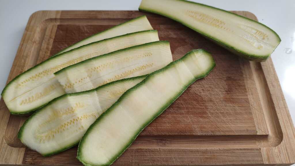 Pour préparer les roulés de courgettes et speck, commencez par laver les courgettes et les couper en tranches d’environ 2-3 cm d’épaisseur. Chauffez un grill et placez-y les tranches de courgettes. Faites-les cuire des deux côtés pendant environ 5 minutes.