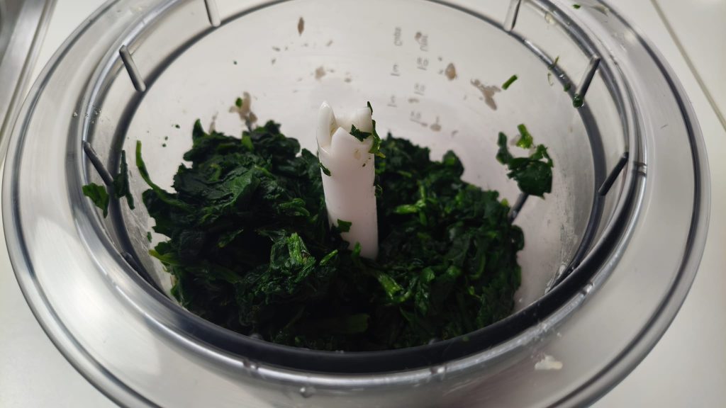 Dans un saladier, mélange le poulet, les épinards, l’œuf, le parmesan, le sel et la chapelure. Mélange jusqu’à obtenir une préparation malléable.
