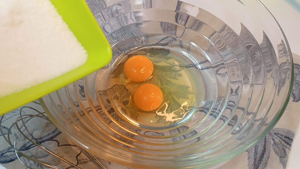 • Préparer la pâte brisée en ajoutant le sucre aux œufs