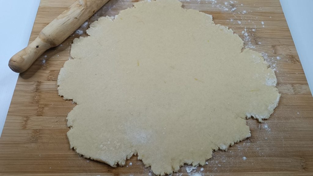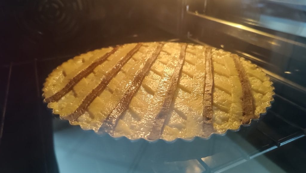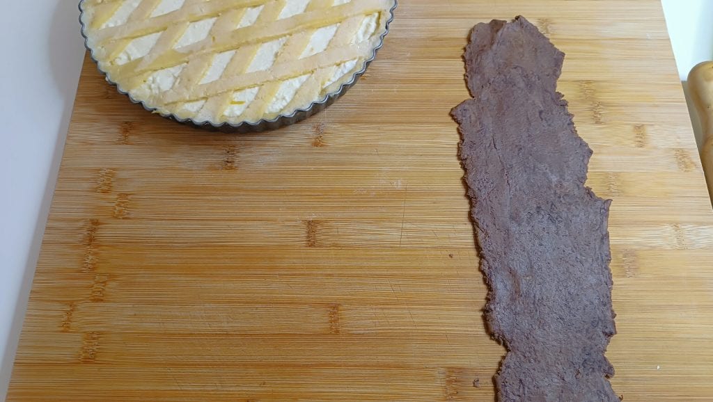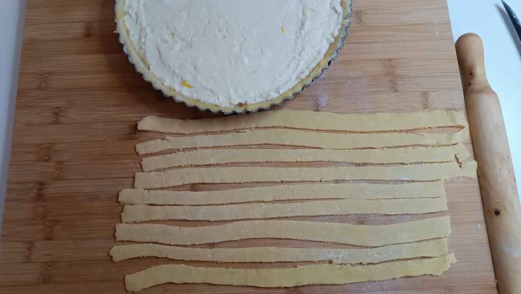 • Étirer la pâte et découper des petites bandes à disposer sur le gâteau