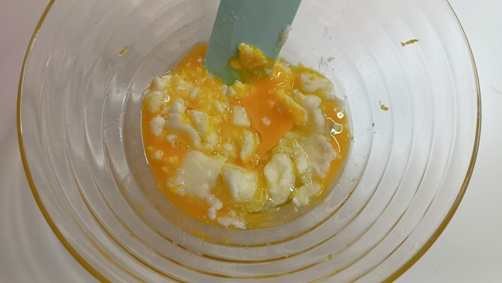 • Entre-temps, dans un bol, mélanger l’œuf avec le sucre.
