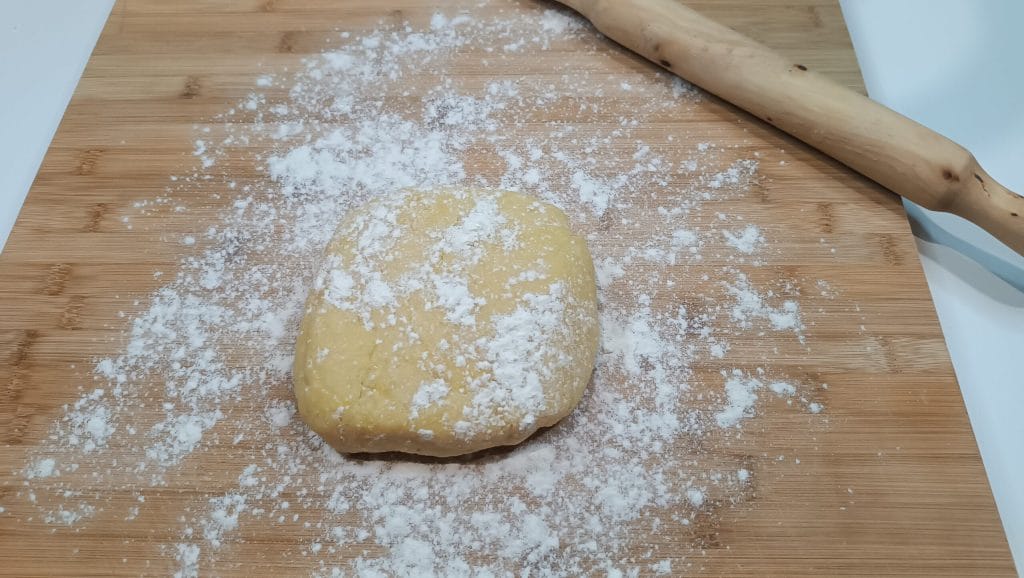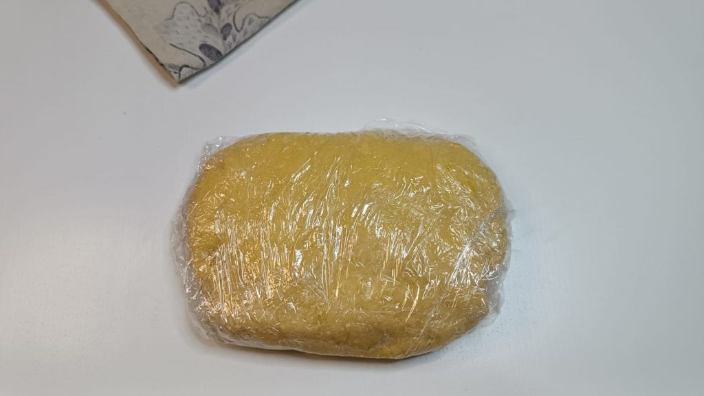 Incorporer la farine et pétrir jusqu’à former une boule qui sera enveloppée dans un film plastique.