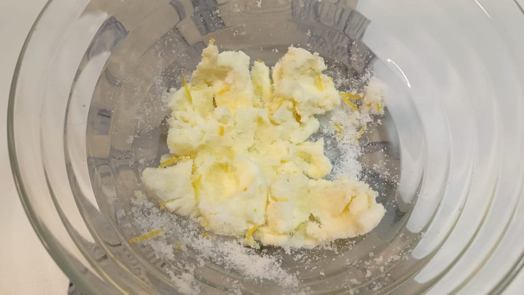 Commencer par la pâte sablée en mélangeant sucre beurre et zeste de citron