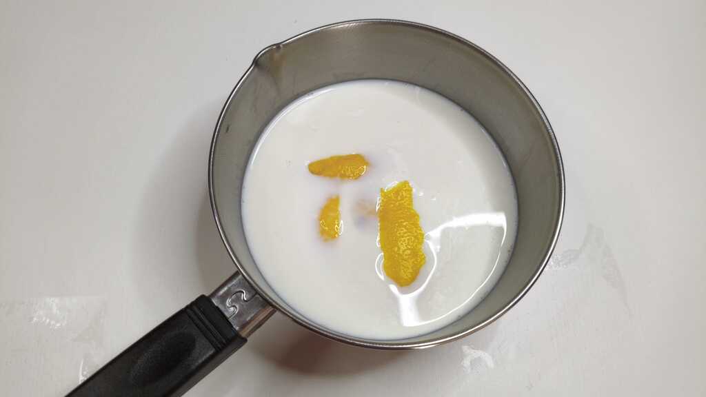 En attendant, préparez la crème pâtissière. Faites chauffer le lait avec le zeste de citron.