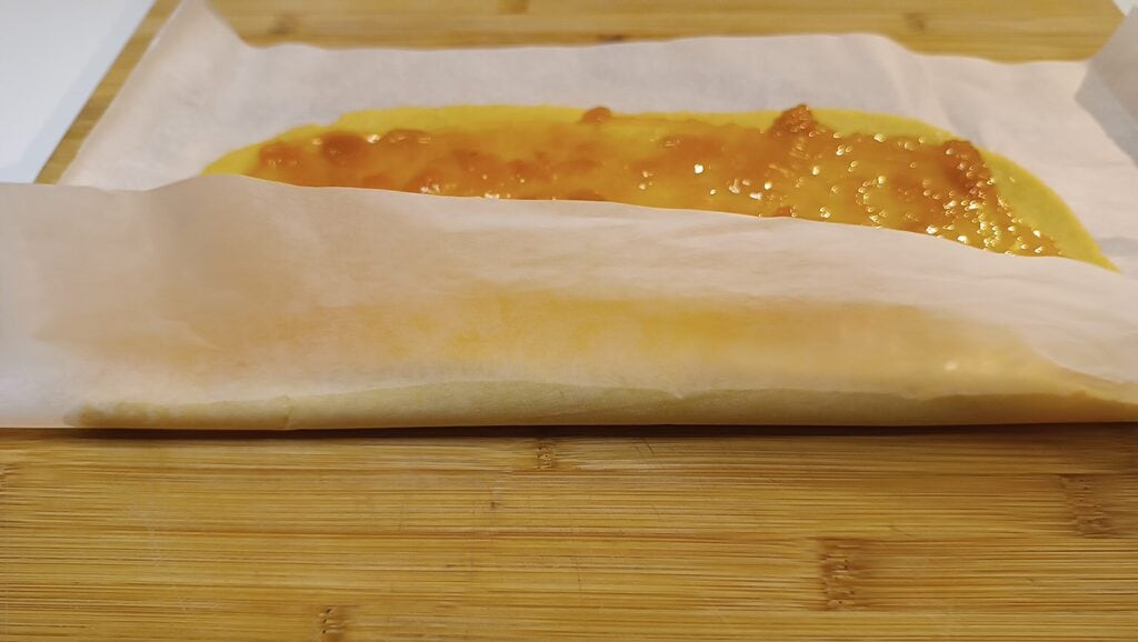 Étaler la confiture de votre choix et rouler en vous aidant du papier sulfurisé