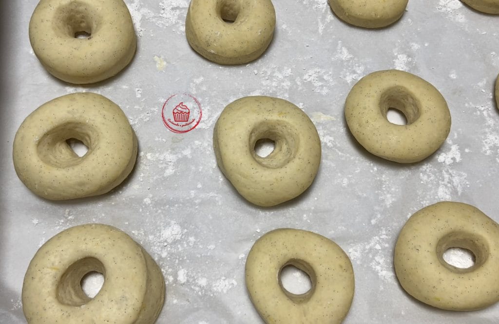 Avec le moule à beignets approprié, j’ai découpé les beignets que j’ai laissés lever pendant environ une heure, ils doivent doubler de volume.