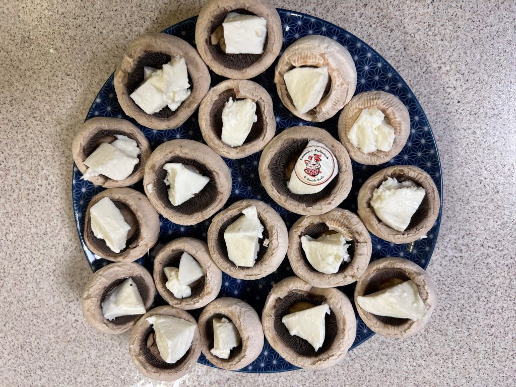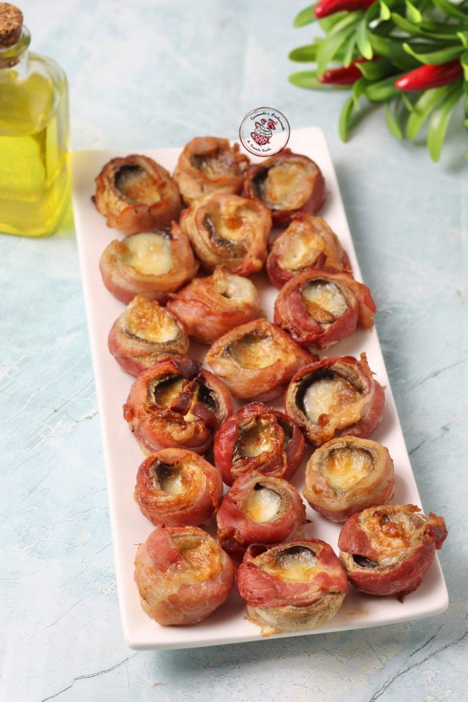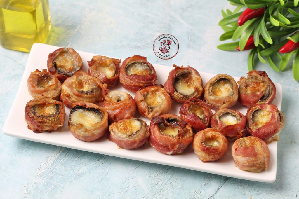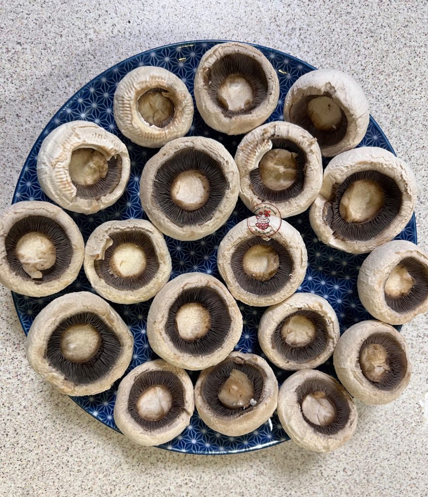 Aujourd’hui, j’ai préparé une entrée vraiment gourmande. Les champignons farcis, je les ai cuits dans une friteuse à air, en 10 minutes ils étaient prêts. Les champignons farcis sont parfaits à servir comme entrée ou finger food, je les adore, on ne peut pas s’arrêter d’en manger. J’ai utilisé de la mozzarella mais on peut utiliser n’importe quel type de fromage. À la place du bacon, on peut aussi utiliser du speck.