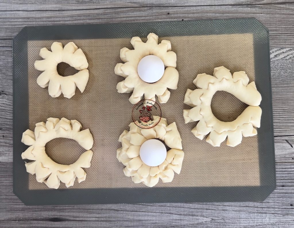Aujourd’hui, j’ai préparé le « Coccoi avec l’œuf », aussi appelé Coccoi avec l’œuf. En Sardaigne, comme le veut la tradition, il est préparé pendant la période de Pâques. Il n’y a pas de boulangerie dans ma région qui ne vende pas le coccoi avec l’œuf, que nous achetons pour les enfants, surtout pour le déjeuner de Pâques. La base est notre pâte dure ou coccoi, qui est vendue toute l’année, à laquelle est ajouté un œuf cru qui deviendra dur pendant la cuisson. Essayez-le car il est vraiment délicieux. De plus, il décorera votre table le jour de Pâques de manière originale. Vous pourriez aussi être intéressé par ;