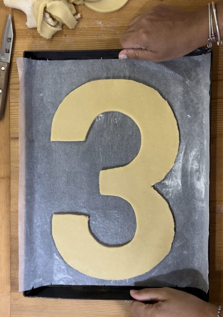 Placez les chiffres obtenus sur la plaque recouverte de papier sulfurisé et laissez reposer 30 minutes au frigo avant la cuisson.