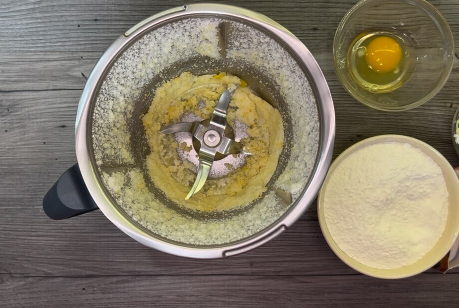 Verser le sucre et le zeste de citron dans le Thermomix et pulvériser 10 secondes à vitesse Turbo.