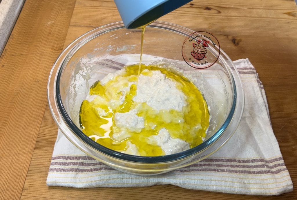 Après le repos de 10 minutes, ajouter l’huile et mélanger jusqu’à ce qu’elle soit entièrement absorbée.