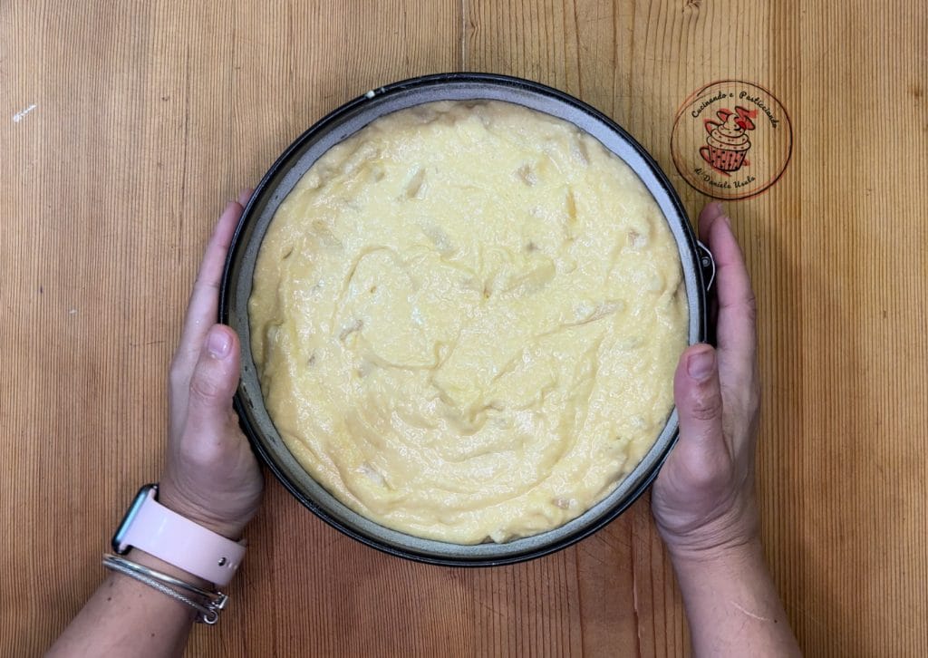 Retirez le bol du robot pâtissier, mélangez avec la spatule pour bien récupérer la pâte et ajoutez l’ananas en sirop coupé en petits morceaux. (Gardez le jus de côté, il nous servira plus tard).