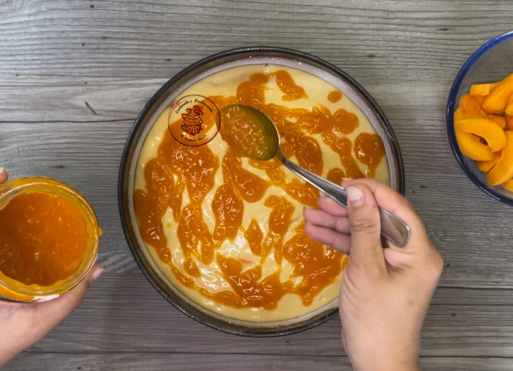 Ajoutez quelques cuillères de confiture d’abricots à la surface.