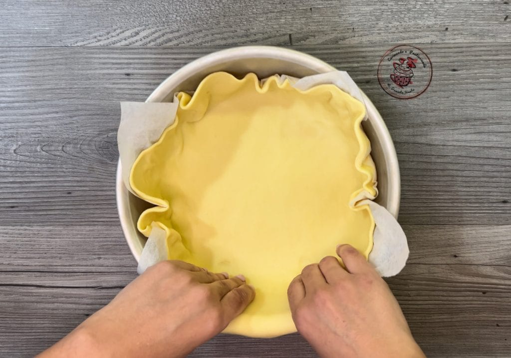 Quand la garniture est prête, étaler la pâte violée très fine.