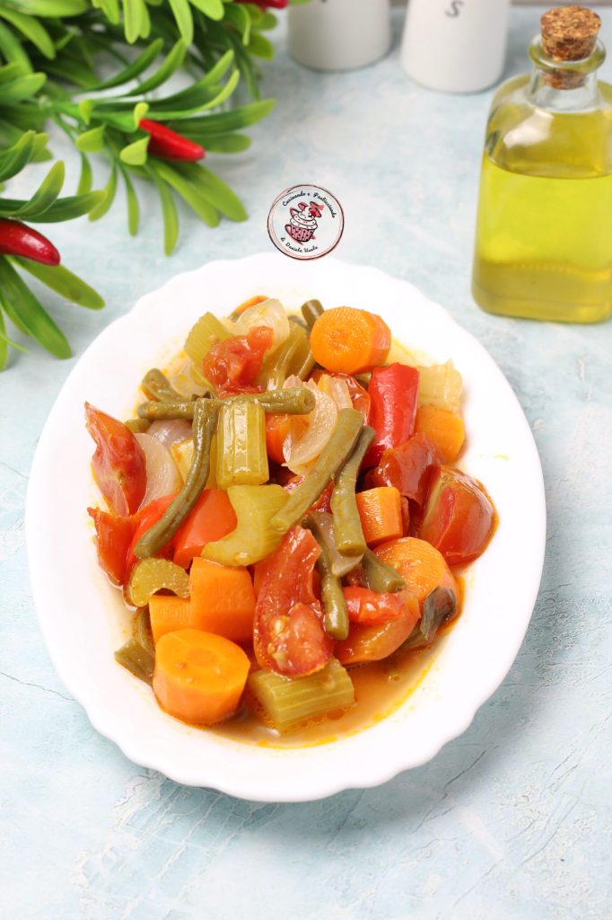 Aujourd’hui, j’ai préparé une recette estivale vraiment explosive, je vous jure que je pourrais manger ces légumes par quintaux. Ils sont délicieux chauds, mais encore plus froids. Et que dire du lendemain avec l’ajout de thon. L’apothéose. Essayez-les car ils sont vraiment bons. C’est la saison parfaite pour cette recette. Si vous aimez les légumes et le goût aigre-doux, cette recette est pour vous.