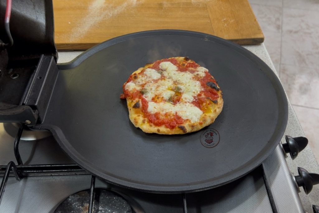 Saupoudrer le plan de travail de semoule de blé dur et étaler les pizzettes à la main.