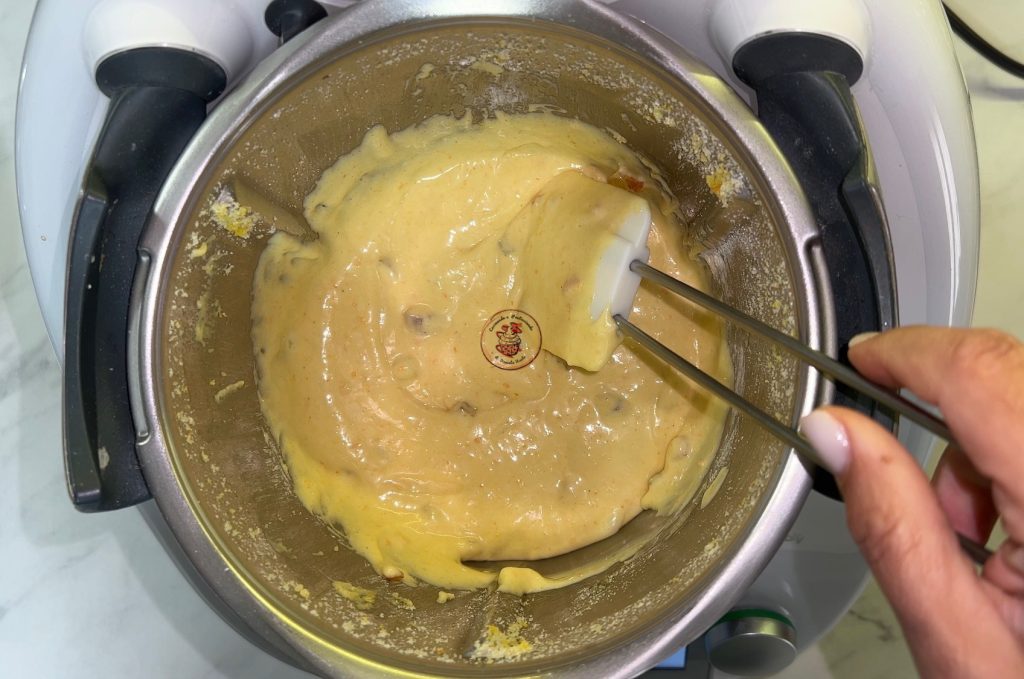 Ajoute le reste des ingrédients (sauf les fruits confits) et travaille 30 secondes à la vitesse 5.