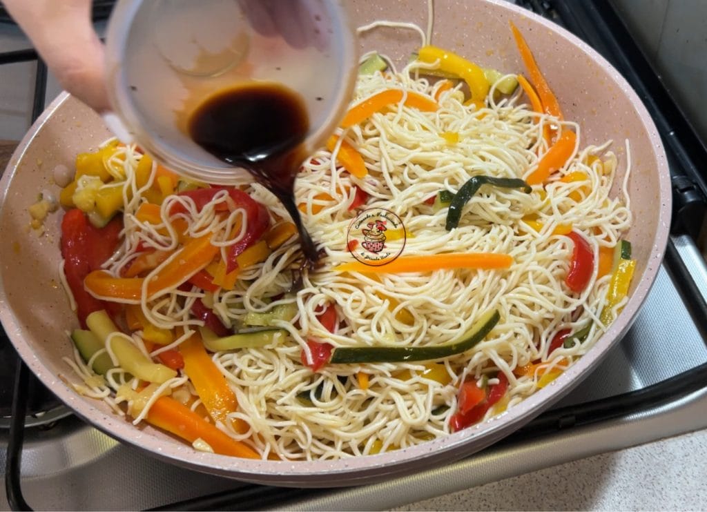 Les nouilles avec légumes sont un plat rapide, coloré et très parfumé, parfait pour ceux qui recherchent du goût et de la légèreté. Cette recette s’inspire de la cuisine asiatique, se prépare en quelques minutes et s’adapte à de nombreuses variations selon les légumes de saison. Aujourd’hui j’ai utilisé des poivrons, des carottes et des courgettes. Un plat idéal pour vider le frigo avec créativité!
