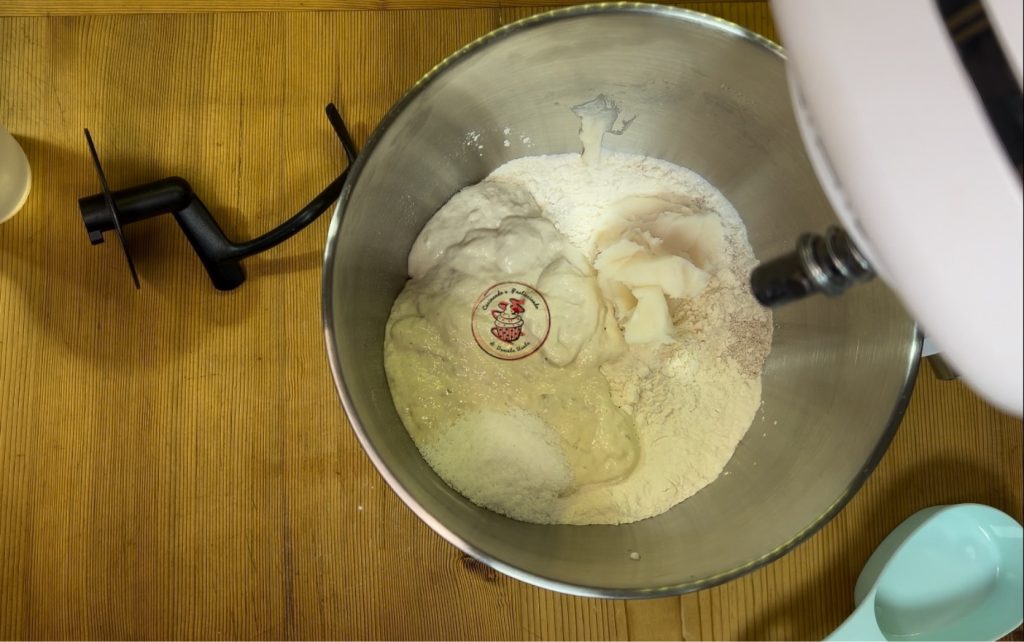 Transférez la pâte sur le plan de travail et faites 3 tours de pliages à intervalles de 30 minutes.