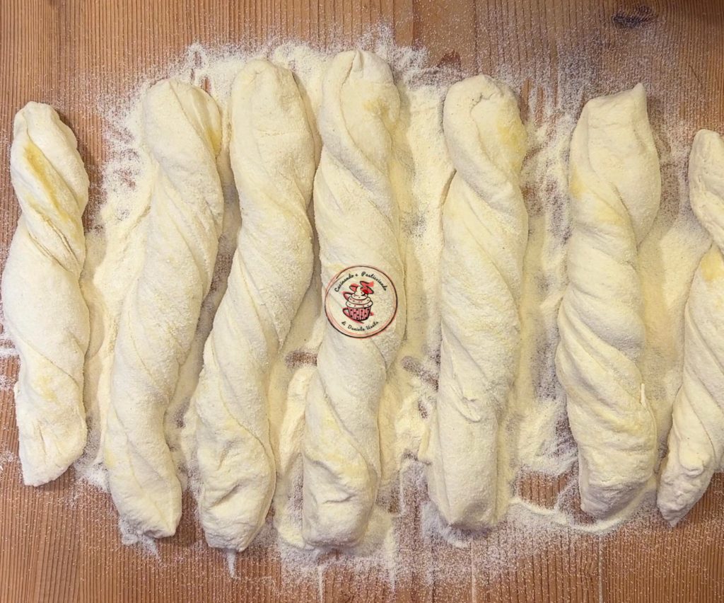 Avec l’aide d’un racloir, diviser la pâte en bandes pas trop fines.