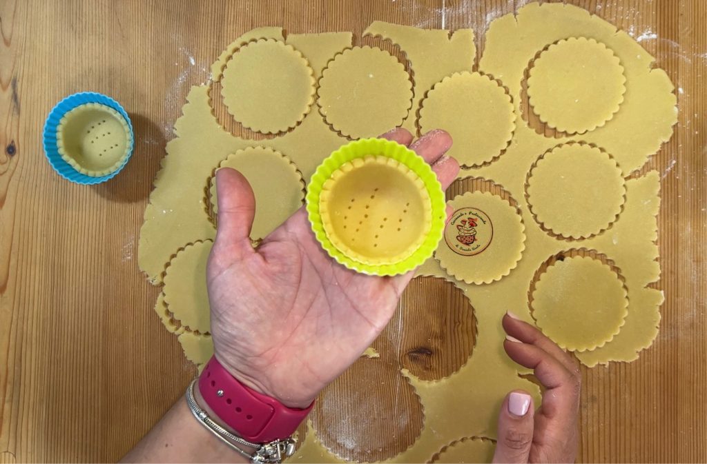 Reprendre la pâte sablée, fariner légèrement le plan de travail et l’étaler pas trop épaisse, environ 1 cm.