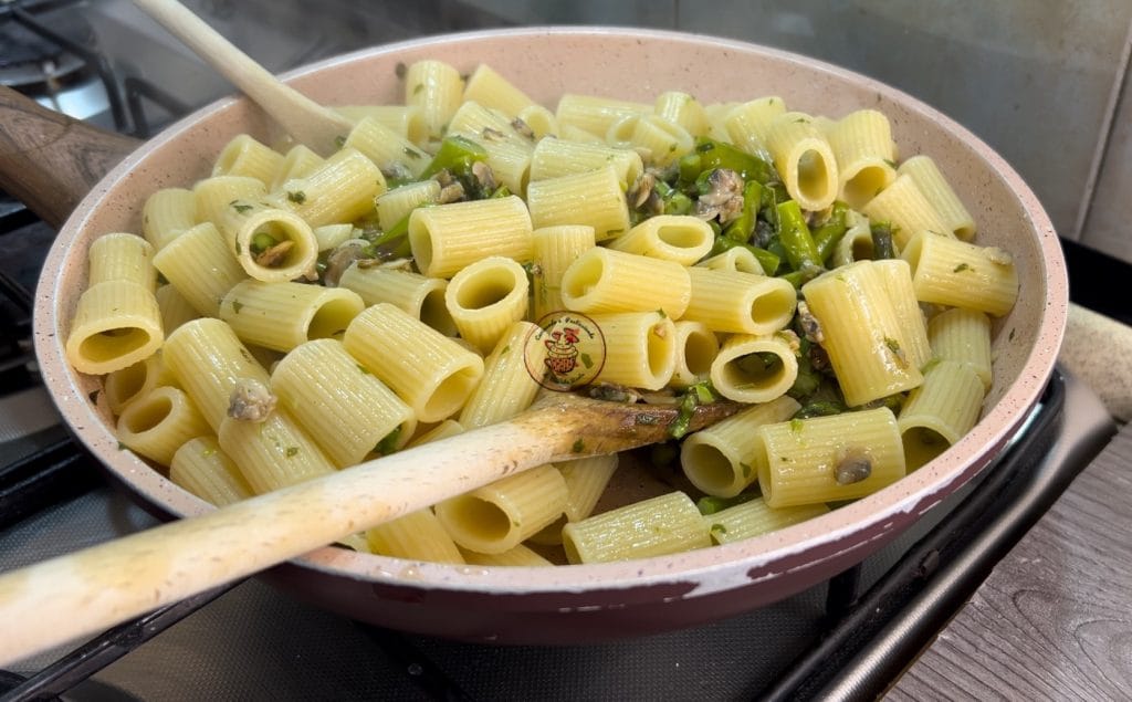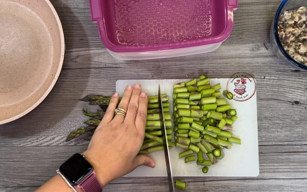 Aujourd’hui, j’ai préparé les pâtes avec des asperges et des palourdes. J’avais déjà essayé les Spaghetti asperges et crevettes et comme nous les avions beaucoup aimés, j’ai décidé de les essayer aussi avec des palourdes. Pour cette recette, j’ai utilisé des asperges cultivées que mon neveu me donne toujours. Trop bon. Pour les palourdes, j’ai acheté celles à coquilles déjà nettoyées congelées. Je voulais faire quelque chose de rapide et il m’arrive parfois de les trouver en promotion, alors pourquoi ne pas en profiter ??