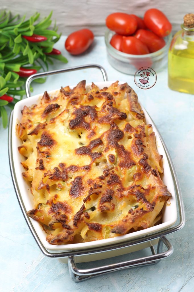 Les pâtes au four avec courgettes et saucisse sont l’un de mes plats de pâtes préférés. J’aime beaucoup préparer les pâtes au four, la croûte qui se forme à la surface est quelque chose d’irrésistible. Les pâtes au four avec courgettes et saucisse sont très simples à réaliser, j’ai choisi des penne, mais vous pouvez utiliser le type de pâtes que vous préférez. Essayez-les. Étant entièrement cuites au four, le temps de cuisson suffira juste pour bien amalgamer le tout et former la fameuse croûte.