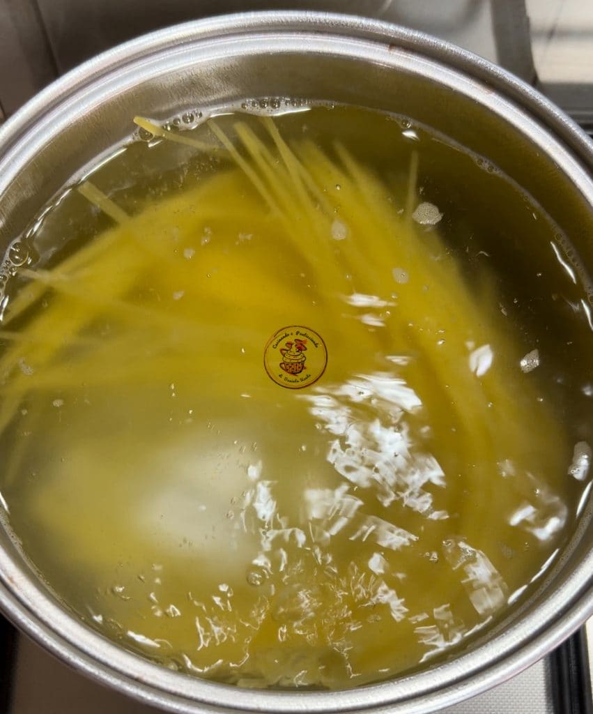 Entre-temps, faire cuire les spaghettis dans une grande quantité d’eau salée pendant le temps indiqué sur l’emballage.
