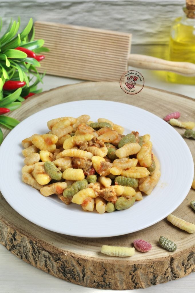 Aujourd’hui, j’ai préparé les petits gnocchis tricolores de pâtes fraîches aux œufs. Cela faisait longtemps que je voulais essayer la Pâtes fraîches aux œufs colorées, et je dois dire que le résultat m’a beaucoup plu. Je les ai faits à la main avec le taglierinou rigagnocchi, mais j’ai vu qu’il existe aussi une machine à gnocchetti que j’achèterai tôt ou tard. Si vous l’avez déjà, vous êtes beaucoup plus avantageuses. Mais les faire à la main est très relaxant. Pour les grandes quantités, je vous recommande définitivement la machine. Ils pourraient aussi vous intéresser ;