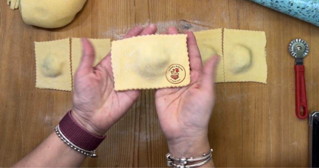 Avec la roulette à pâtes, découpez les raviolis. Bien grands, je vous en prie.