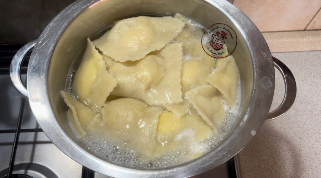 Cuire les raviolis pendant environ 15 minutes (les miens étaient assez épais) mais vous ajustez en fonction de l’épaisseur de vos raviolis. Nous les aimons très épais.