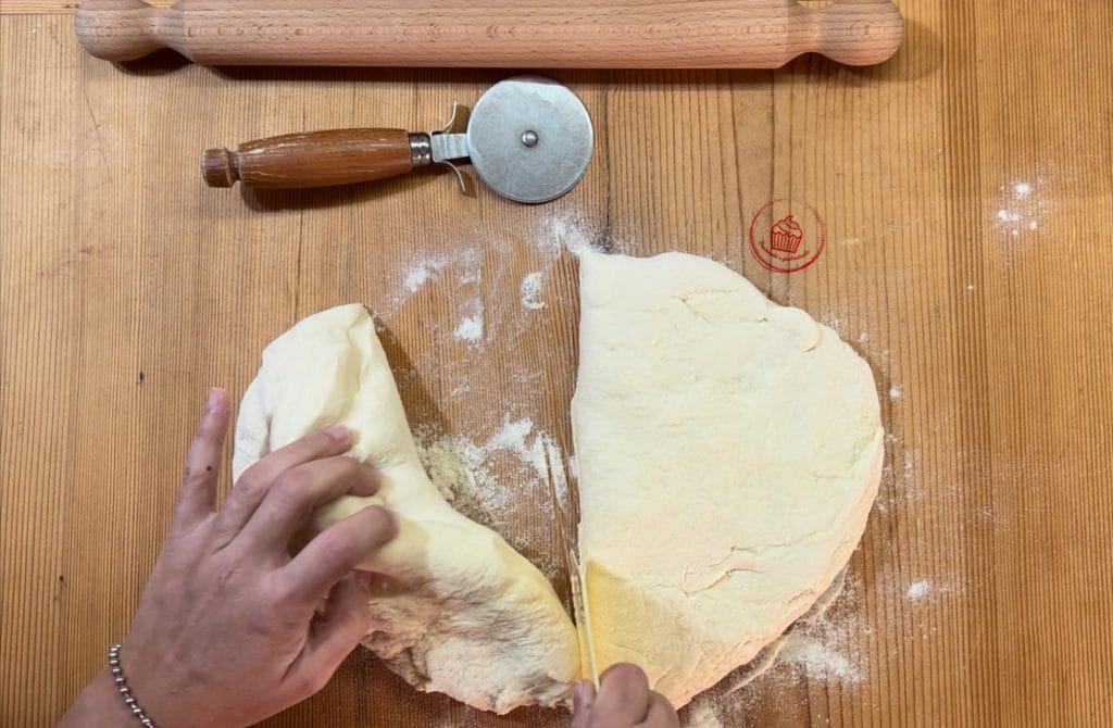 J’ai laissé lever jusqu’au doublement, j’ai divisé la pâte en deux, avec une partie j’ai fait le pain avec la deuxième partie les roulés.