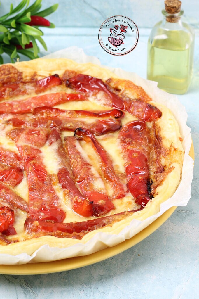 Colorée, riche et incroyablement savoureuse : la tarte salée aux poivrons, salami et fromages est la recette parfaite pour un dîner rapide, un déjeuner au bureau ou à emporter en pique-nique. Les poivrons, doux et juteux, se marient parfaitement avec la saveur du salami et la crémeux de la provola et mozzarella, créant un mélange irrésistible.