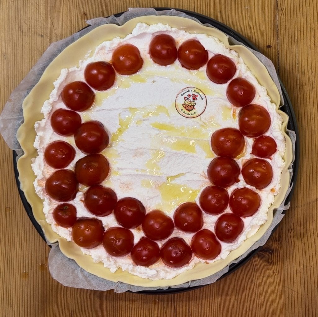 Après le succès de la Tarte salée aux courgettes et tomates, aujourd’hui j’ai préparé une tarte salée ricotta et tomates cerises, délicieuse et super rapide à préparer. J’adore les tartes salées, vous me connaissez maintenant. J’aime toujours expérimenter de nouvelles saveurs. L’association ricotta et tomates, je l’avais déjà essayée, mais pas dans une tarte salée, et je dois dire que le résultat m’a beaucoup plu. La prochaine fois, j’ajouterai aussi du mortadelle. Je pense que ça irait très bien qu’en dites-vous?