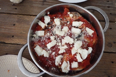 Poursuivez jusqu’à épuisement des ingrédients, vous devrez obtenir trois couches au total. Couvrez la poêle avec le couvercle et faites cuire à feu doux pendant environ 20 minutes, lorsque la mozzarella sera complètement fondue, retirez le couvercle et terminez la cuisson pendant encore 5 minutes. Laissez tiédir avant de servir à table. Pour obtenir des aubergines à la pizzaiola encore meilleures, je vous conseille de passer la poêle, une fois retirée du feu, sous le gril du four pendant deux ou trois minutes, bien sûr, vous devrez utiliser une poêle adaptée à la cuisson au four. Bon appétit !
