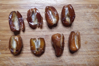 • Coupez les dattes dans le sens de la longueur en les ouvrant délicatement en livre et retirez le noyau.