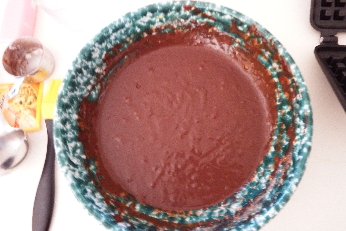 Badigeonne le gaufrier avec du beurre fondu. Verse à l’intérieur deux petites louches de pâte. Ferme le gaufrier, mets-le sur le feu et cuis deux minutes de chaque côté à feu moyen. Continue ainsi jusqu’à épuisement des ingrédients. Au total, tu devrais obtenir quatre gaufres.