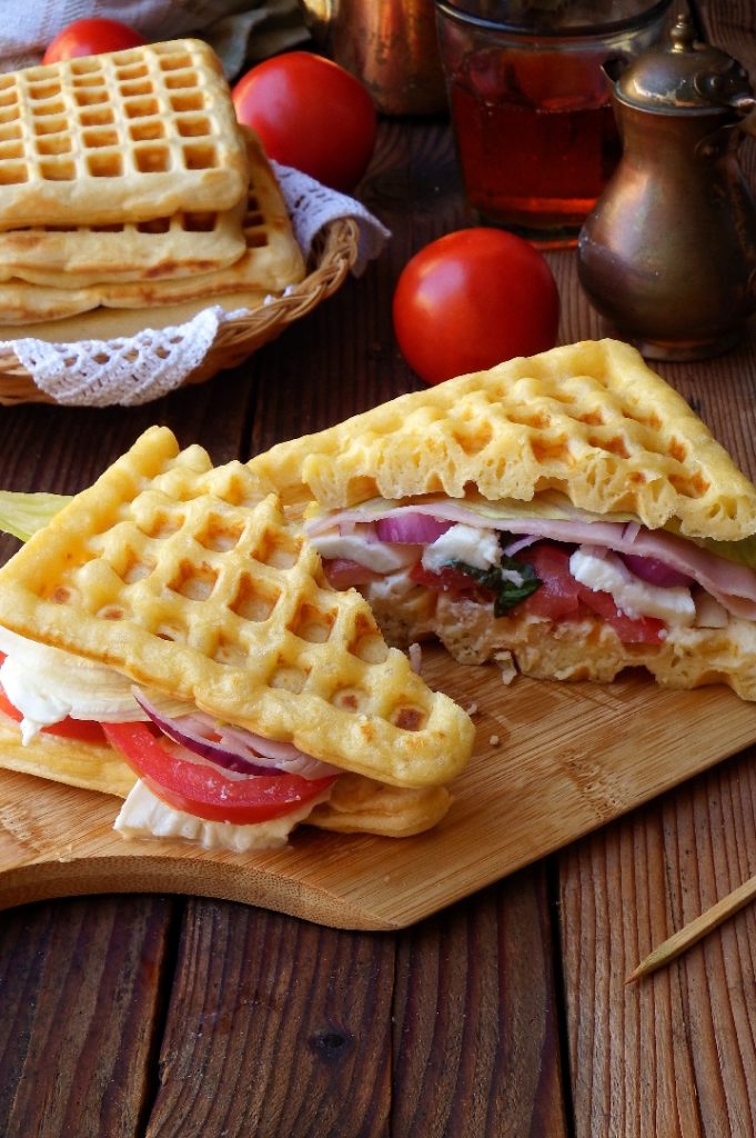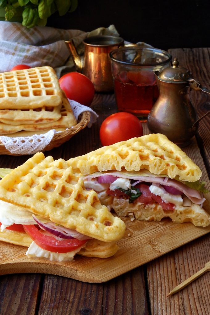 Les gaufres salées sont la version rustique, idéale pour des brunchs salés ou des apéritifs, des célèbres gaufres sucrées appelées waffle ou goufre, très connues pour leur forme en nid d’abeille et généralement garnies de miel ou de fruits frais.