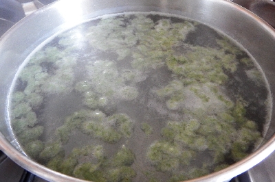 • Lavez les feuilles d’épinards et faites-les cuire à feu moyen couvertes jusqu’à ce qu’elles soient flétries. Éteignez le feu et laissez refroidir
