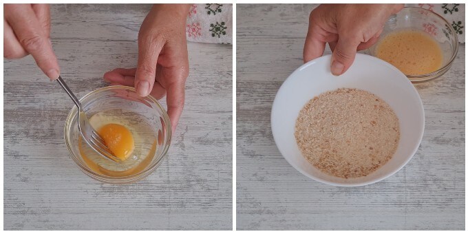Dans un autre petit bol, mettez de la chapelure (environ 70 g sont nécessaires).