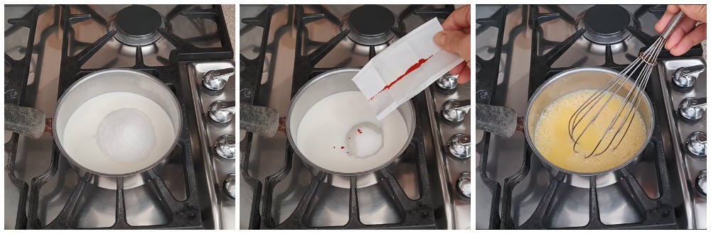 Après 7 jours, préparez le sirop : mettez le lait, la crème et le sucre dans une casserole, ajoutez le safran et chauffez jusqu’à frôler l’ébullition, en remuant constamment avec un fouet. Dès que le liquide a frôlé l’ébullition, le sucre sera complètement dissous, alors retirez du feu et laissez refroidir.