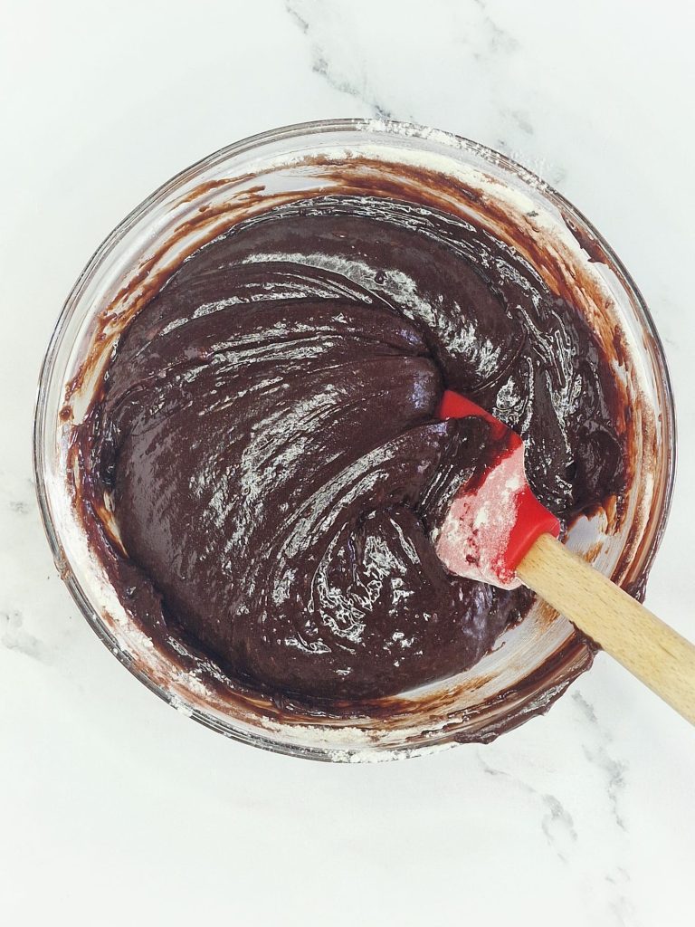 Avec une spatule, incorporez bien la farine jusqu’à obtenir un mélange homogène.
